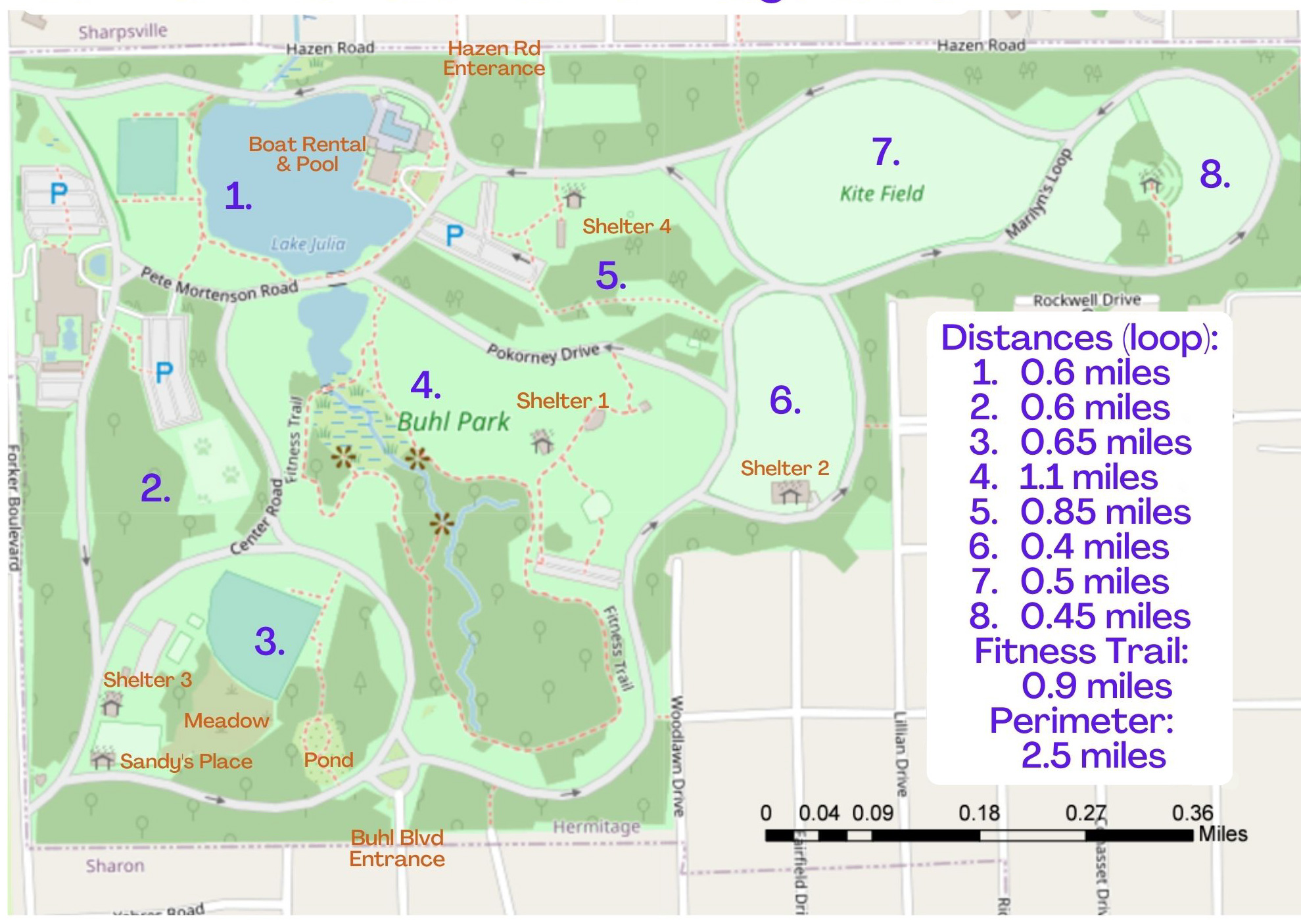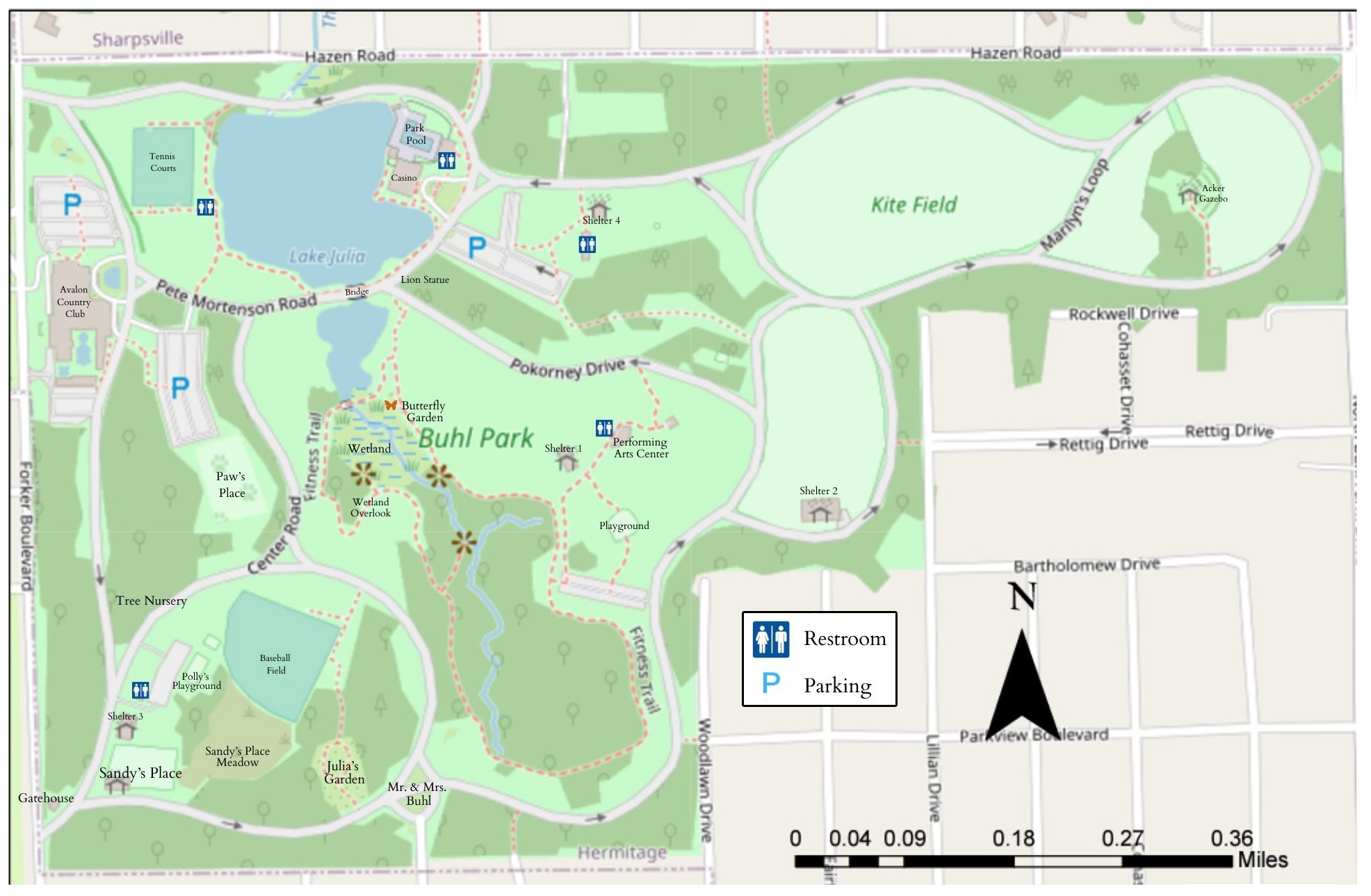 View maps of Buhl Park attractions, rental areas, and trails for planning your visit!